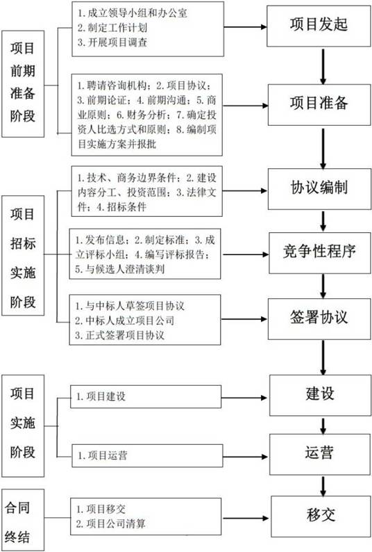 (二)项目招投标实施阶段。项目招投标实施阶段包括协议编制、竞争性程序、签署协议三个部分。