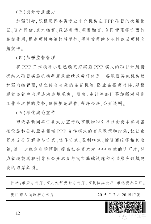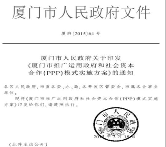 厦门市人民政府关于印发《厦门市推广运用政府和社会资本合作(PPP)模式实施方案》的通知