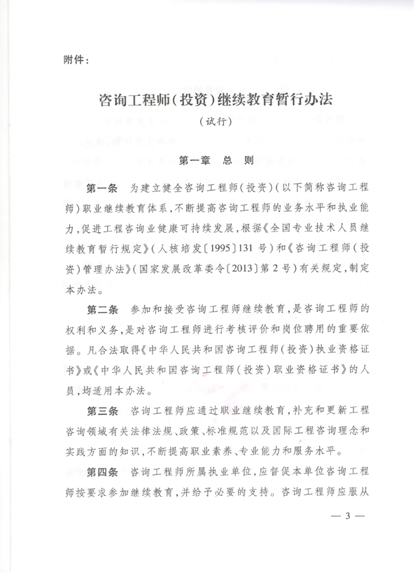 关于印发《咨询工程师(投资)继续教育暂行办法(试行)》的通知